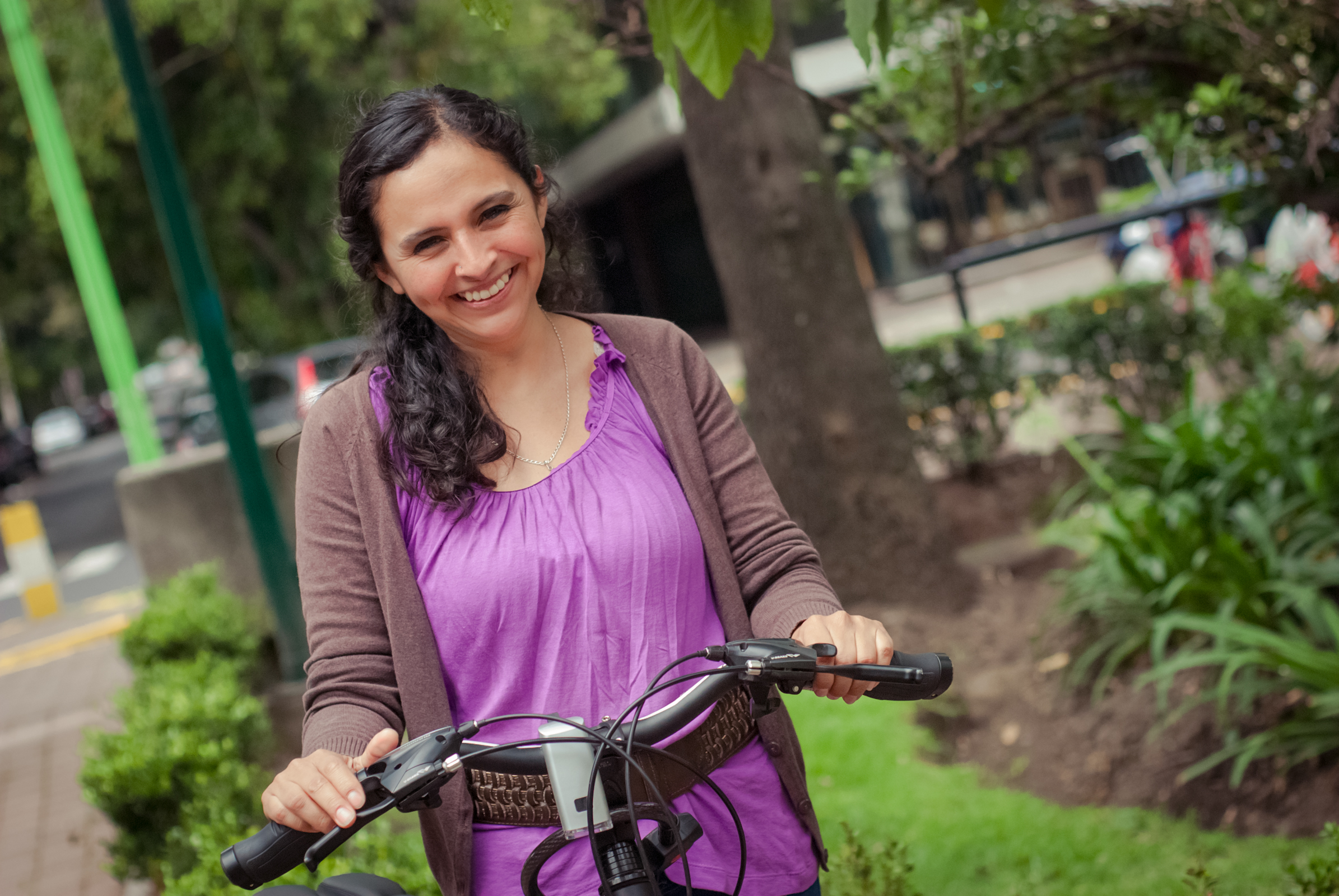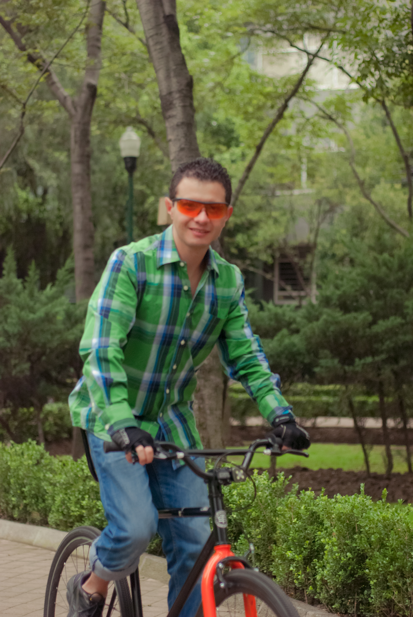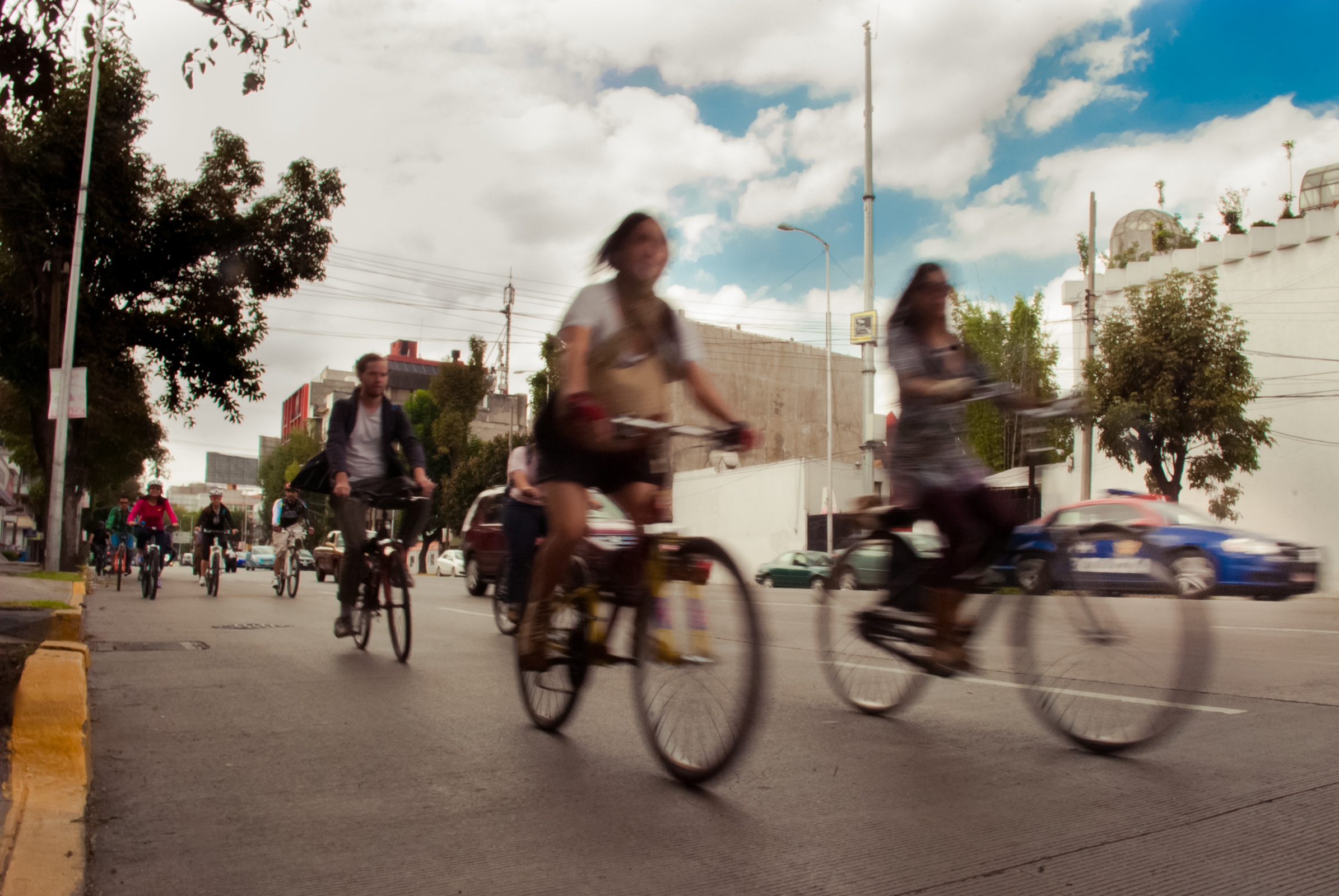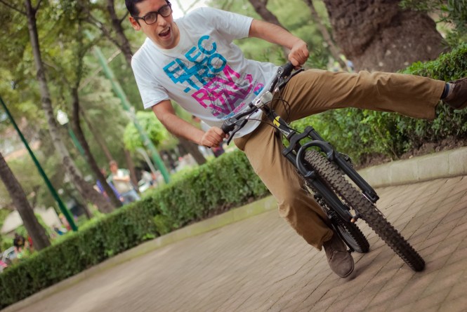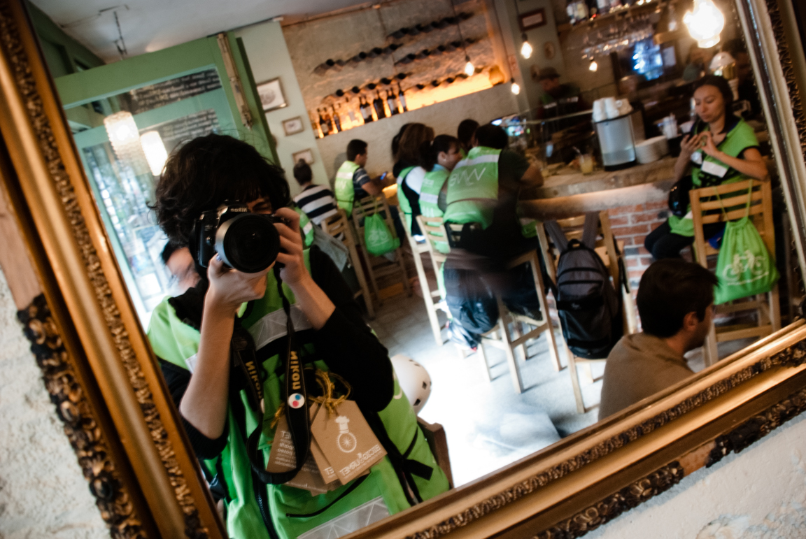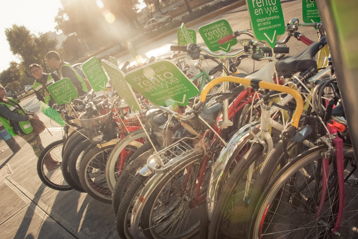 Nos fuimos rumbo a Polanco, pasando por la Condesa para detenernos en el Parque Lincoln y realizar la sesión fotográfica llena del verde de los árboles, en parte decidimos ir hacia esa zona de la ciudad dado que hacía pocos días recién habían inaugurado el sistema Ecobici en el barrio, queríamos aportar nuestro pequeño granito de arena mostrando cómo mas de 20 ciclistas pueden tomar las calles y convivir sin problemas por ellas (que por los baches están a la altura de cualquier colonia popular de nuestra gran ciudad). Hubo buenas y malas experiencias que no pasaron a más, nos quedamos con una buena: un flamante Ferrari dándonos el paso para que nosotros rodáramos delante de él en una calle estrecha. Una vez que paramos en el parque, inundó primero la timidez, cuando le dijimos al grupo que queríamos tomarles una foto individual con su bici, la reacción casi en general fue decir: «si, pero primero que pase___», una vez que iban pasando la timidez disminuía y comenzaron a animarse y posar con mas seguridad. Habia alguno que otro que decía: no me gustan las fotos porque no soy fotogénica, sin embargo con nuestra gran fotógrafa es imposible no verse bien en sus fotos, eso da mucha confianza a las personas para intentar desenvolverse más.